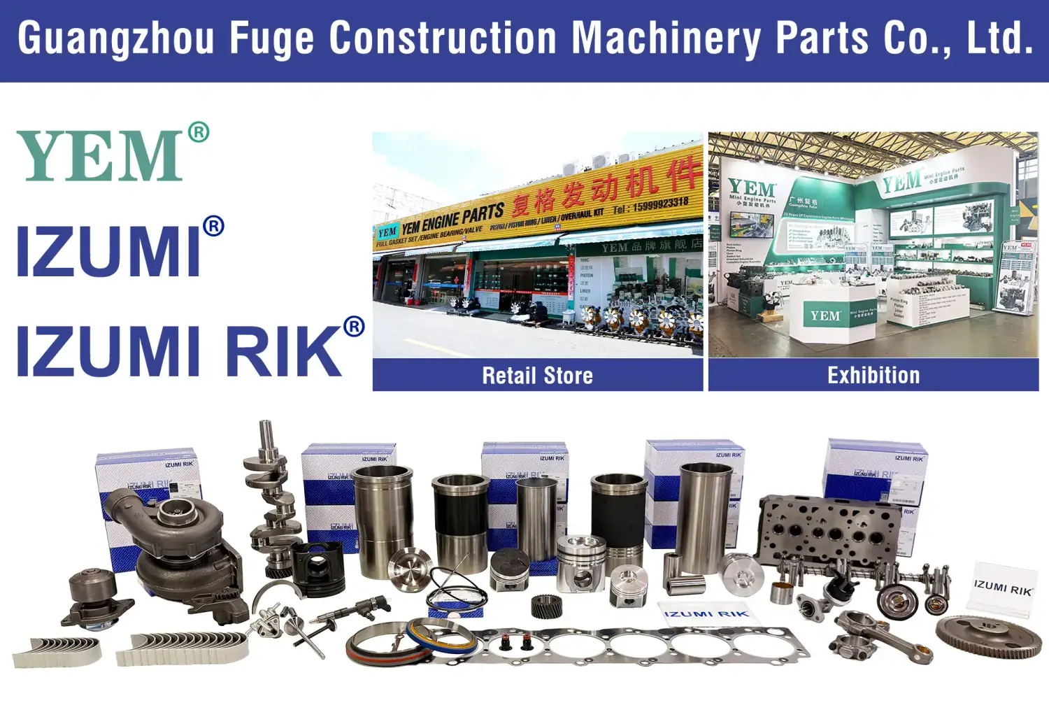 Our products ranges including Engine Ass’y and Engine parts, Hydraulic Pump and parts, Hydraulic Motor Ass’y and parts, Control Valve Ass’y and parts, Cylinder Ass’y and seal kits, Driving Cabin Ass’y and inside parts, Electric parts, Under carriage parts, Mini excavator, pile driver, hammer etc.